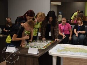 Методист по экологическому просвещению Тигирекского заповедника и национального парка «Салаир» Олеся Южкова провела для участников профильной смены экоигротеку. Школьники 6-9 классов разделились на команды, символами которых стали яркие представители животного мира нашей страны. Под руководством Олеси Витальевны ребята в игровой форме познакомились со спецификой некоторых «заповедных» профессий, с фауной и флорой, природными объектами и культурно-историческим наследием особо охраняемых природных территорий (ООПТ) России. Дети бурно обсуждали, спорили, предлагали свои варианты ответов на предложенные ведущим задания и выбирали лучший из них – в командах кипела работа!