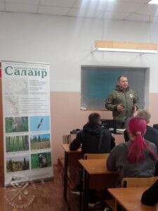 Экологическое просвещение – одно из важнейших направлений деятельности Тигирекского заповедника и национального парка «Салаир». На постоянной основе осуществляется совместная работа с высшими и средними учебными заведениями городов Алтайского края, со школами населенных пунктов, находящихся в непосредственной близости к особо охраняемым природным территориям (ООПТ). В рамках эколого-просветительской работы старшим государственным инспектором национального парка «Салаир» Антоном Трейером организована встреча с учащимися Тогульского филиала «Бочкаревский лицей профессионального образования». В ходе лекции «Знакомьтесь — национальный парк «Салаир» Антон Валерьевич рассказал об ООПТ. В целом о черневой тайге и её обитателях. Особый акцент сделал на правилах поведения в лесу, в том числе при встрече с дикими животными, безопасного обращения с огнём и недопустимости загрязнять окружающую среду.