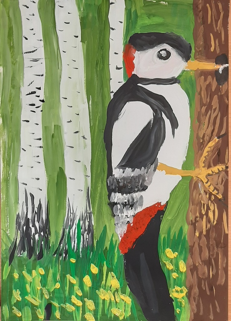 Дипломом I степени среди участников в возрастной категории 5-6 лет за работу «Спаситель леса (дятел)» отмечен Константин Шилкин