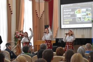 Вокальная группа АлтГПУ «Вольта» исполнила музыкальные номера. Стихотворение Роберта Рождественского «Монолог Царя зверей» прочла сотрудница музея и участница музейной любительской театральной студии «Арка» Кристина Цыбынюк.