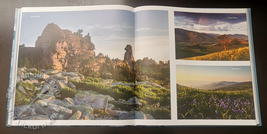 Целый разворот авторства Алёны Рубан, профессионального пейзажного фотографа, путешественника, члена жюри «Живой природы Алтая», ранее неоднократного призёра этого фотоконкурса. Фотографии размещены в разделе, посвящённом Тигирекскому заповеднику. Тем самым местам, куда сложно добраться, но которые потом остаются с тобой надолго — и в памяти, и в кадрах.