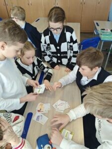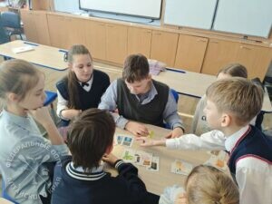Школьникам очень понравилось играть в тематическую настольную игру «Монстры-хламонстры». Она разработана Центром экономии ресурсов (г. Москва) и помогает детям разобраться в том, какие отходы можно вторично использовать, чем опасны свалки. Ребята разделились на команды и с азартом «ловили» монстров свалок и мусоросжигания карточками переработки. Карты в верной последовательности собирались быстро и практически без ошибок. Дети в ходе игры закрепили полученные на занятии знания и потренировали память и внимательность.