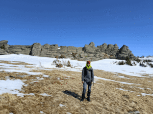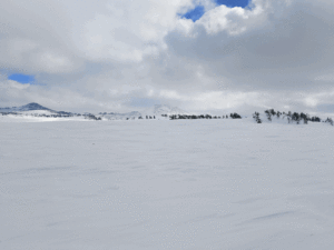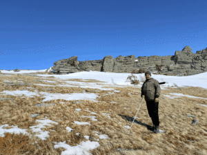 Маршрут пролегал с высоты 1400 метров над уровнем моря по южному склону, поднимался до высшей точки перевала (1500 м) и затем спускался до 1400 м на северном склоне. Наблюдения показали характерную картину перераспределения снега, обусловленную ветровым режимом.